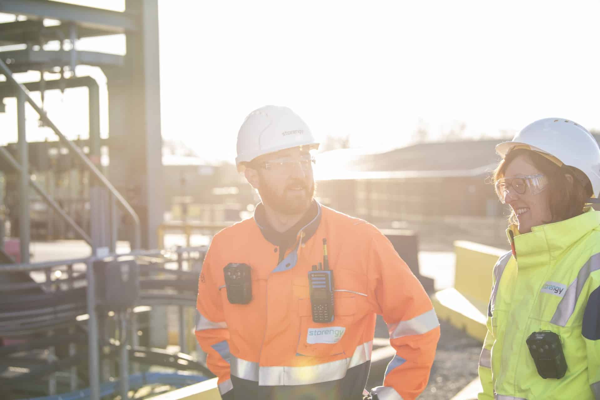 Colleagues walk through gas storage site